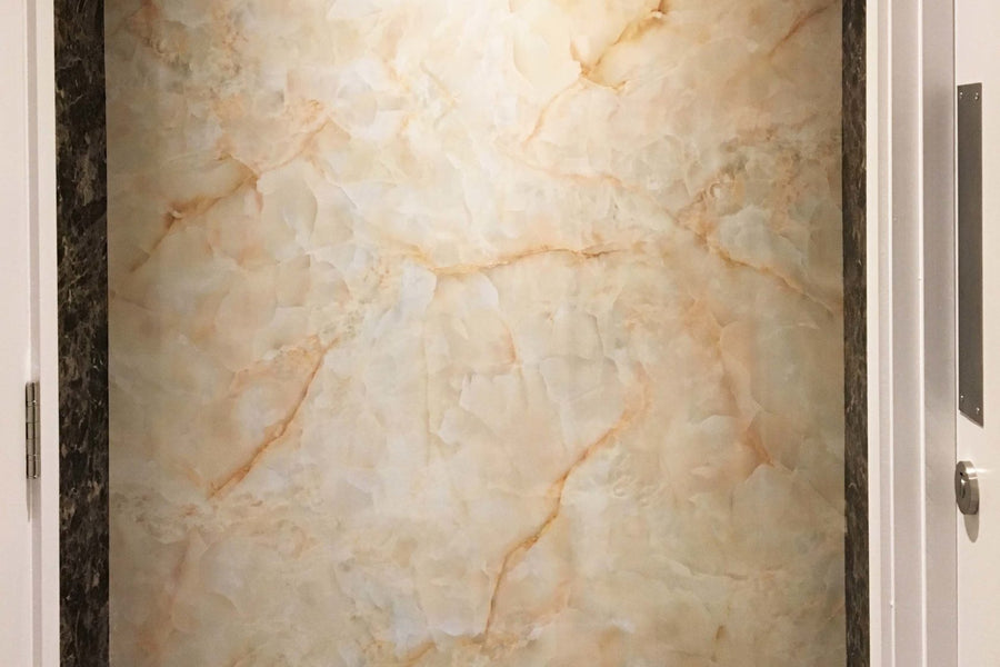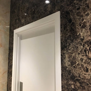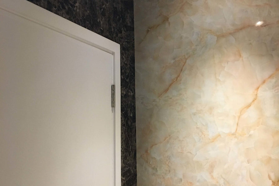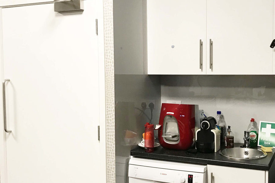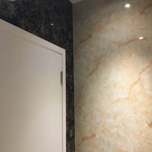 The corridors in the offices required refurbishment, a task that involved durable and easy-to-clean products due to their high traffic. Because of this, we used our Reco High Gloss Marble Finish and Reco Design White Croc wall panels to give the client exactly what they needed. These wall panels provided both the office and showroom a high-end finish without high costs.