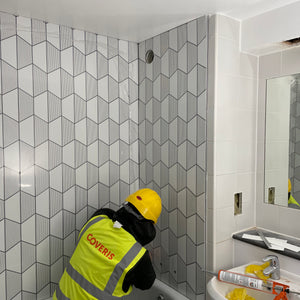 Whitbread approached Reco in 2018 with the challenge of supplying a bespoke design of our fast-fit, maintenance-free panels for guest bathrooms. Panels that looked and felt like high end tiles but reduced fitting costs and cleaning.