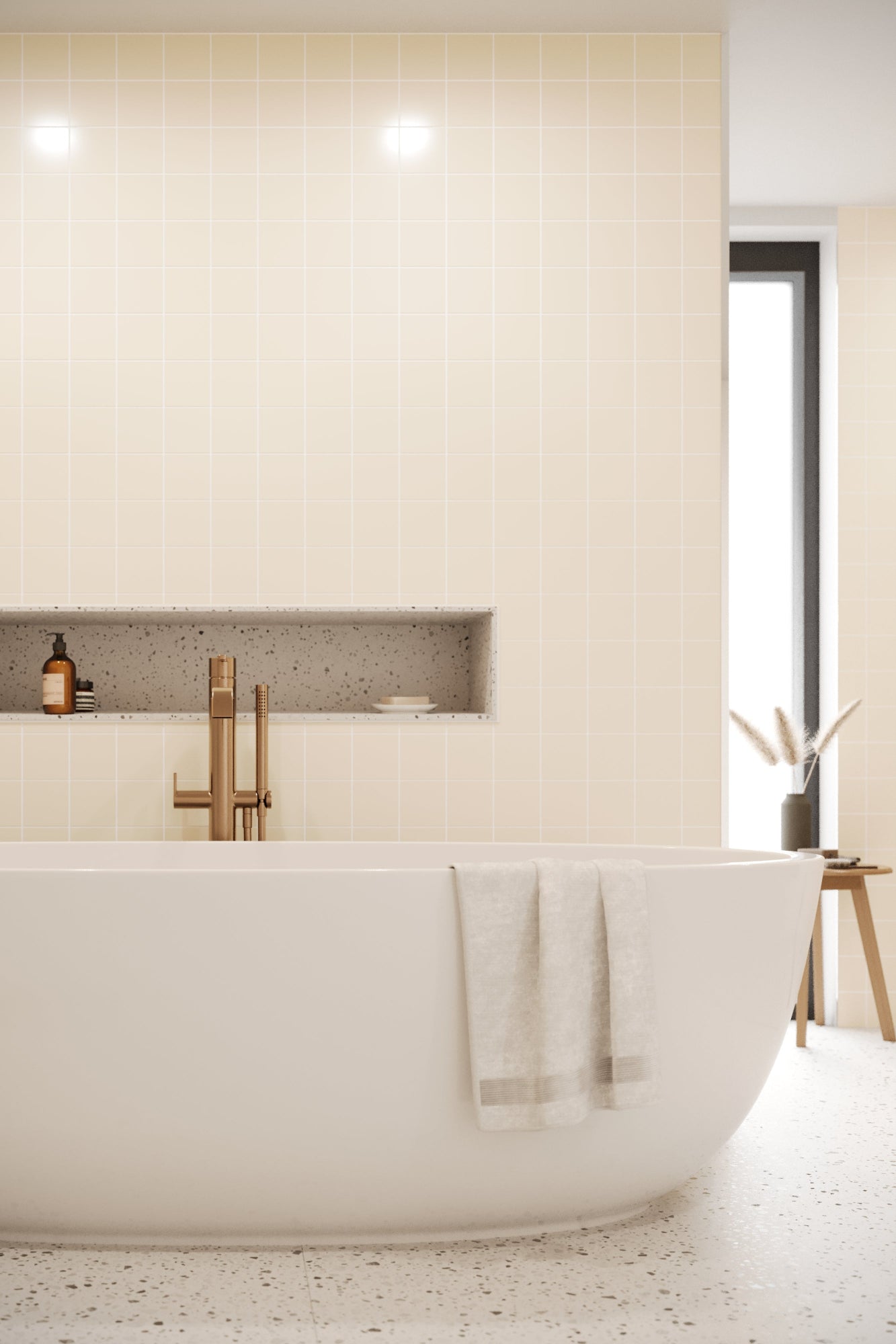 The iconic, grout-free Reco bathroom wall panels are also available in a 150 x 150mm tile size. This makes it incredibly versatile for many projects: