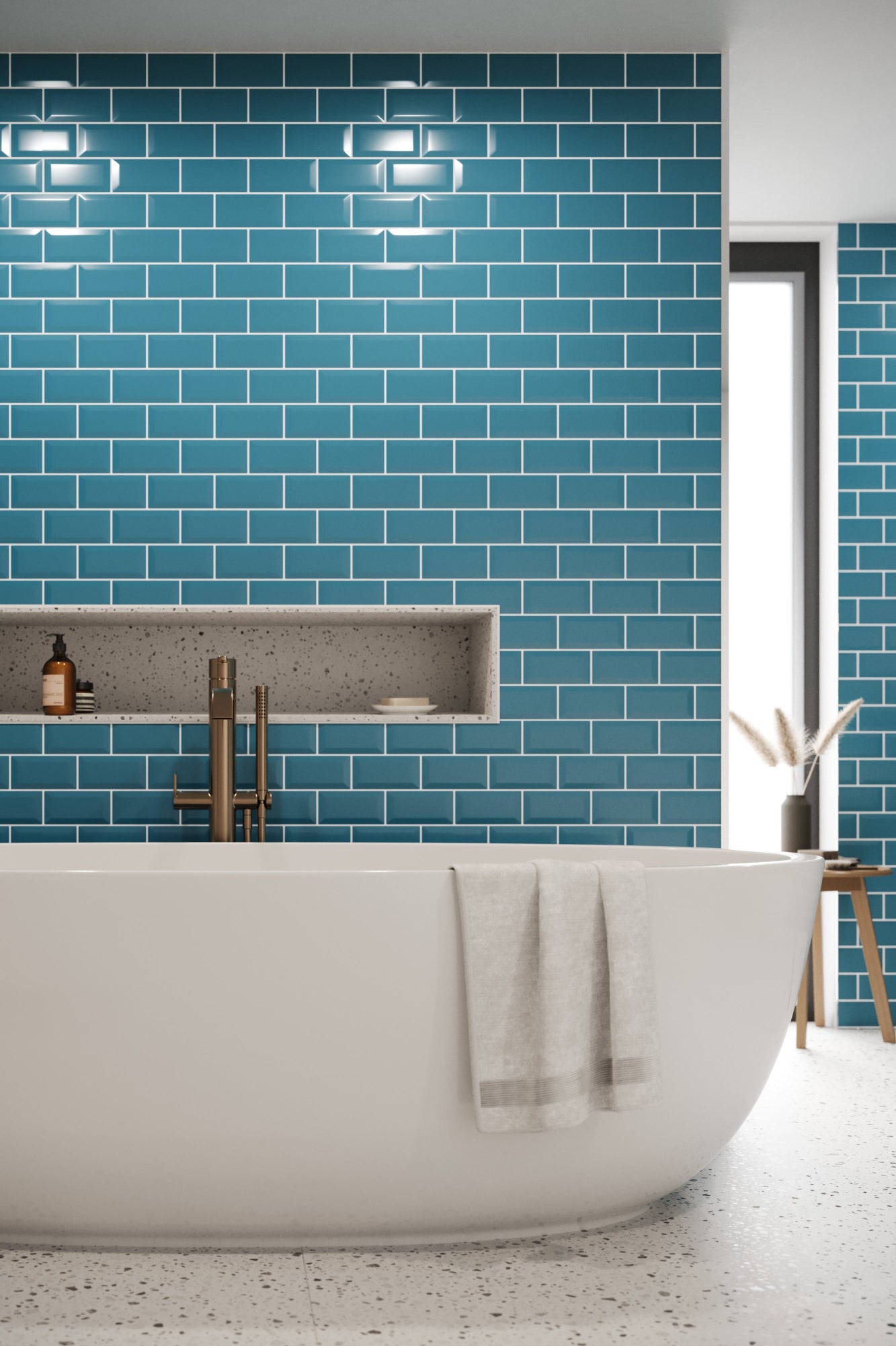 Bevel Metro Tile Teal Blue