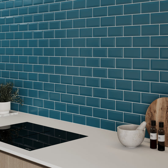 These Bevel Metro Tile in Denim Blue are a high-gloss, brick-like style wall panel which are an excellent alternative to tiling. The traditional design is the perfect way to update your classic kitchen or bathroom.