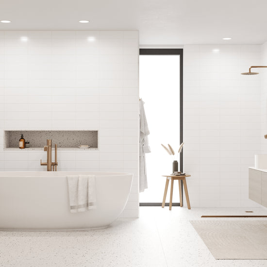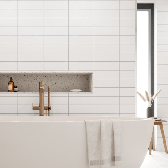 This Metro Large (Linear) version of our modern, stylish Metro Flat design have a tile size of 300(w) x 100(h)mm. Inspired by the distinctive tiling of urban underground systems, metro tiles with their high-gloss brick look lend timeless geometric chic to any interior. Contemporary yet classic, they complement any scheme from industrial to rustic to elegant.