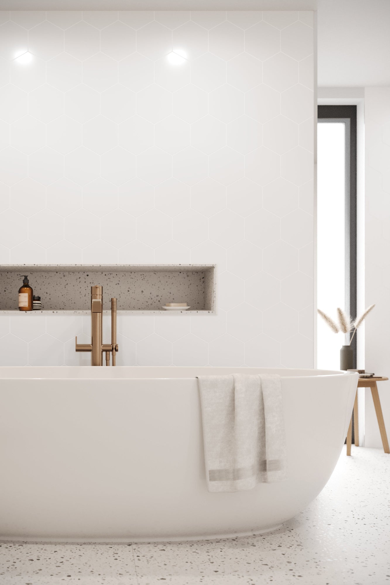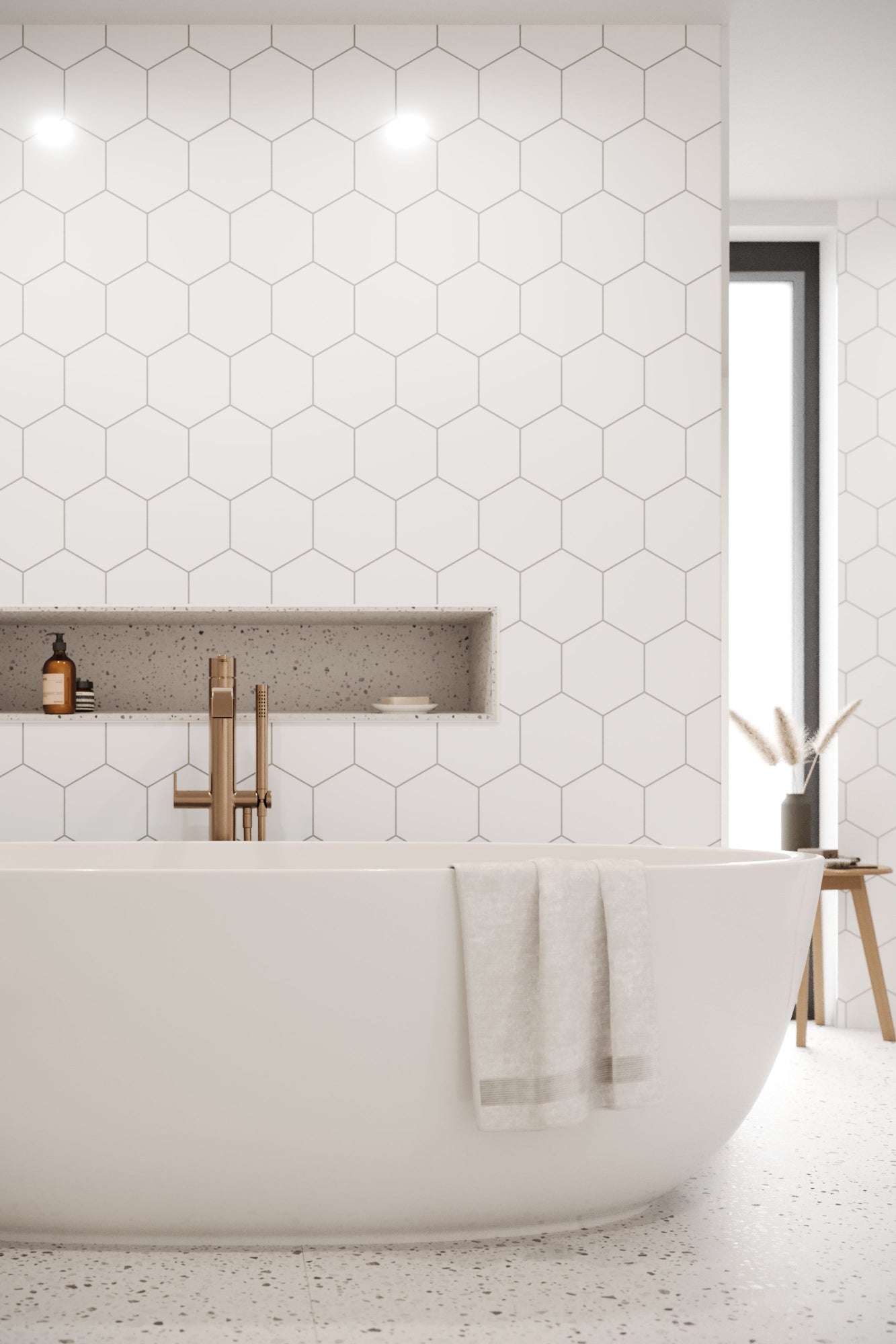 The Reco Hexagon Tile Panels are perfect for adding interest to home surfaces without the significant mess, time and money requirements associated with tiling. Available in a range of colours. Ideal for kitchens and bathrooms.