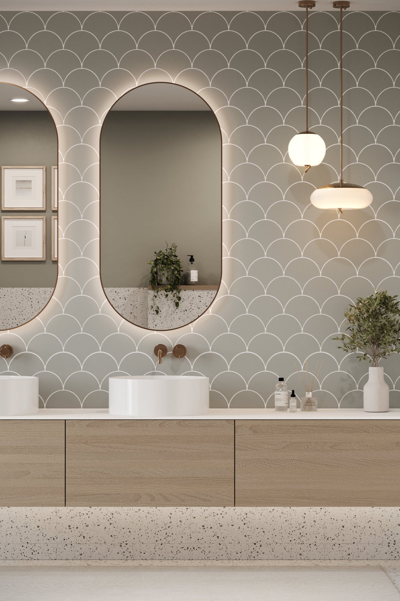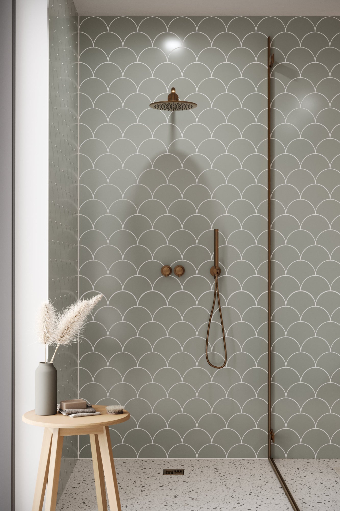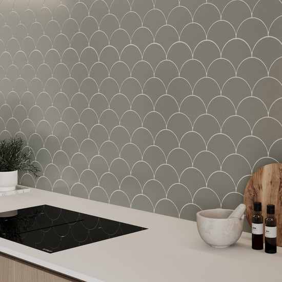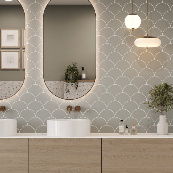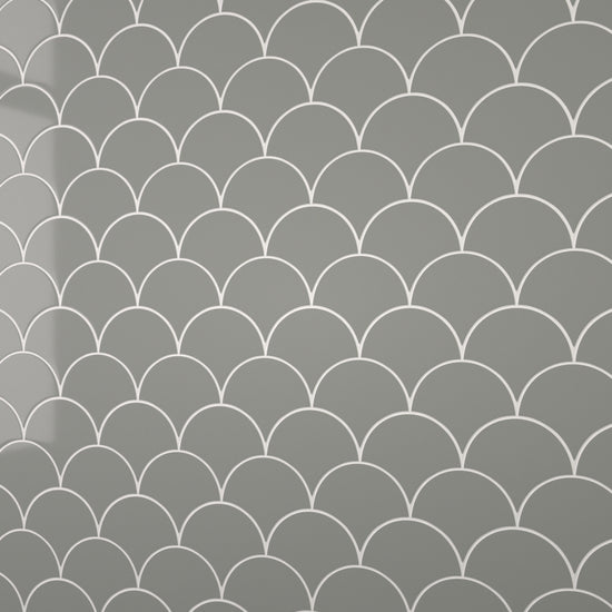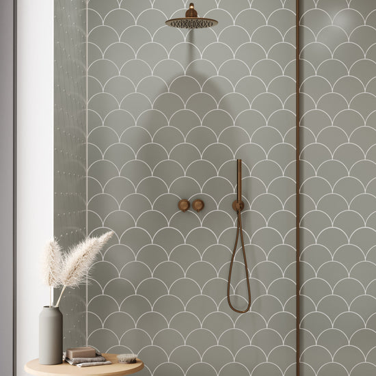 You can bring the suggestion of the sea to your bathroom with Reco Mermaid Tile Dark Grey Wall Panels. This eye-catching tile alternative to traditional block tiling offers soft and calming lines. The circular pattern and soft waves with marine inspired colours will lend to a distinctive creative feel to any space.