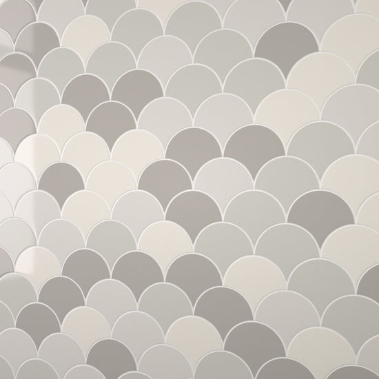 You can bring the suggestion of the sea to your bathroom with Reco Mermaid Tile Grey Scale Wall Panels. This eye-catching tile alternative to traditional block tiling offers soft and calming lines. The circular pattern and soft waves with marine inspired colours will lend to a distinctive creative feel to any space.