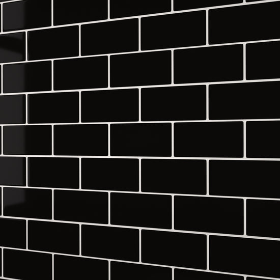 The Small Flat Metro Tile in Charcoal Black Wall Panel is inspired by the distinctive tiling of urban underground systems. ‘Metro’ tiles with their high-gloss brick look lend timeless geometric chic to any interior.