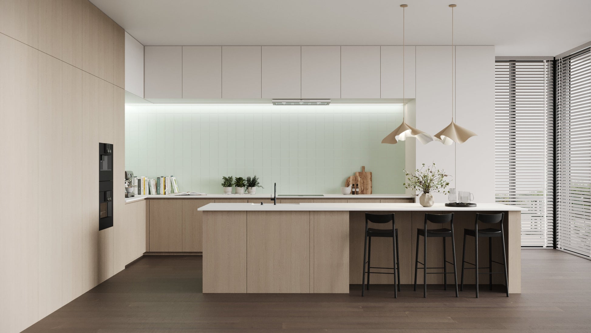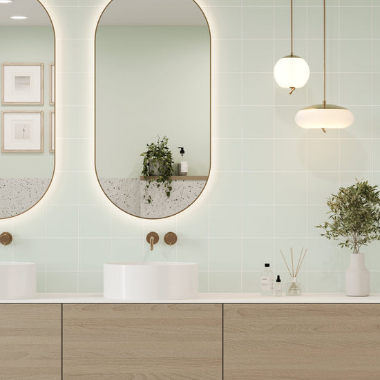 Due to the 150x150mm tile size the standard tile in Glass Green wall panel can be used horizontally or vertically.