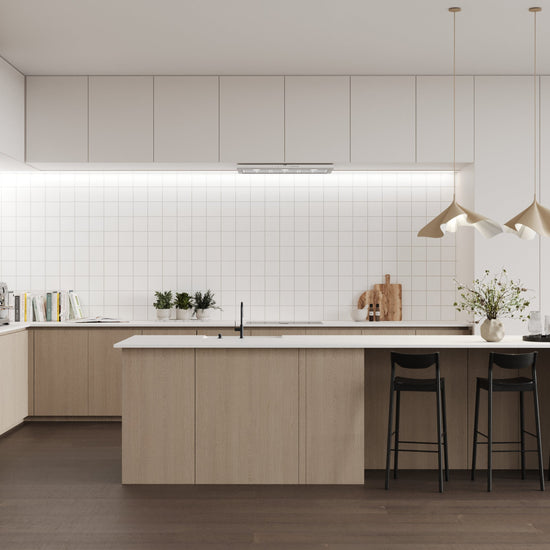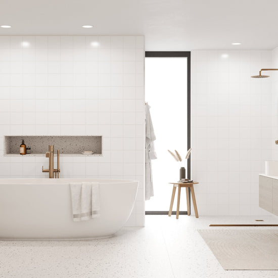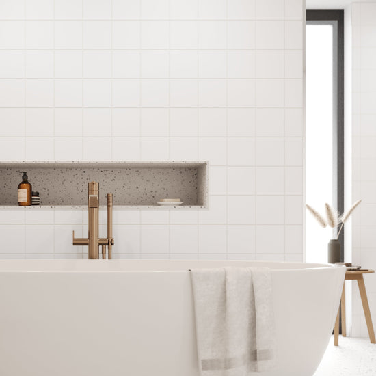 Due to the 150x150mm tile size the standard tile in White wall panel can be used horizontally or vertically.