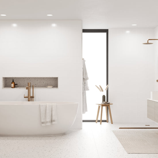 The Reco Standard Tile in White wall panel comes in a tile size of 150x150mm. These wall panels give you the high-gloss look of classic tiling but with the advantages of panels, including: