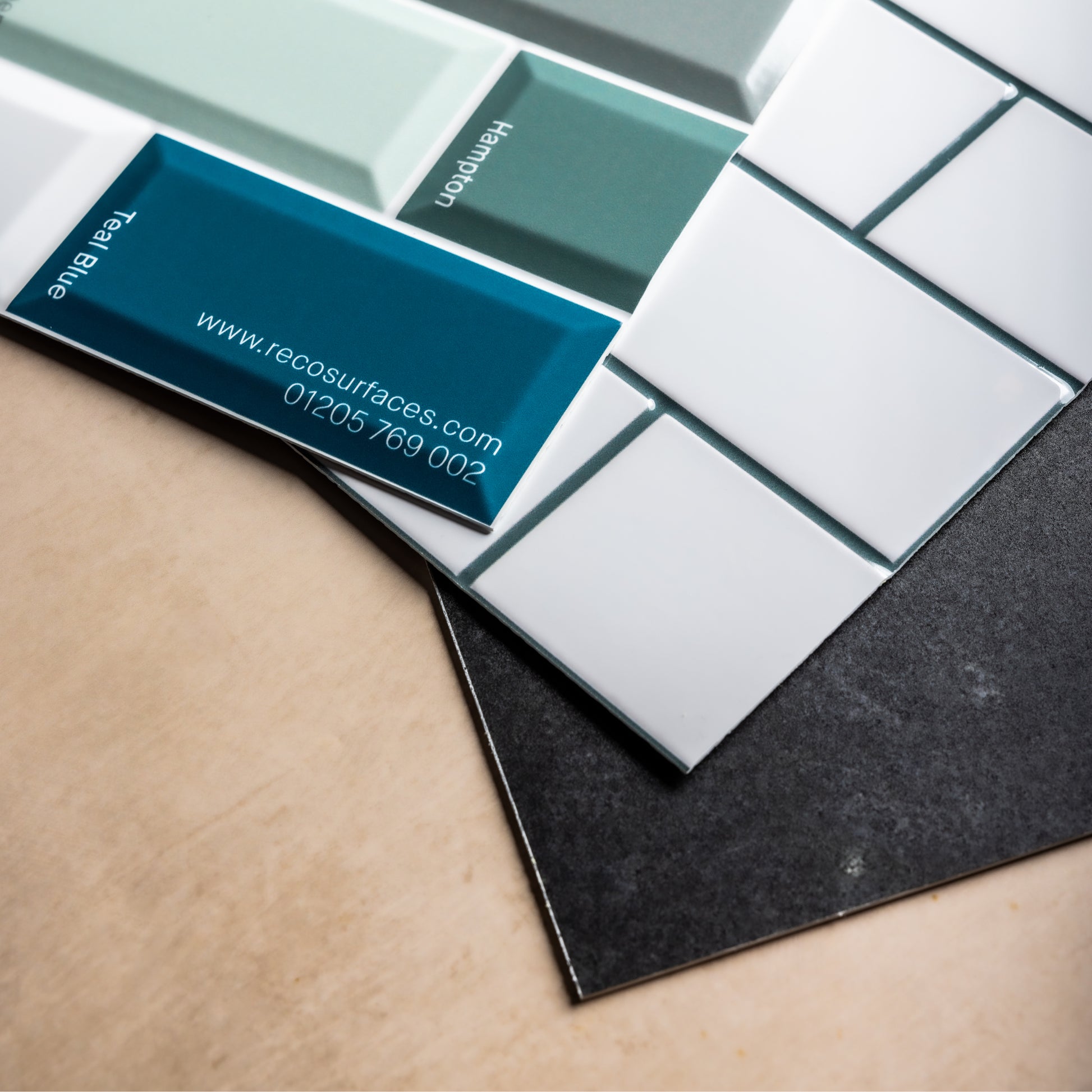 As the panels have no grout you do not need waterproof matting or boards behind the panels. You can also fit them over existing tiles which saves you strip out costs. You need only three products to fit our panels (Reco seal tape, adhesive & silicone) vs up to twelve for tiles. Then when fitting our panels, it takes around 1/4 of the time which means there are labour savings. Once installed the panels do not require maintenance so there are also further long term savings. The combination of these attributes mean that we are at least 40% cheaper than basic tiles and up to 80% cheaper than high end or bespoke tiles.